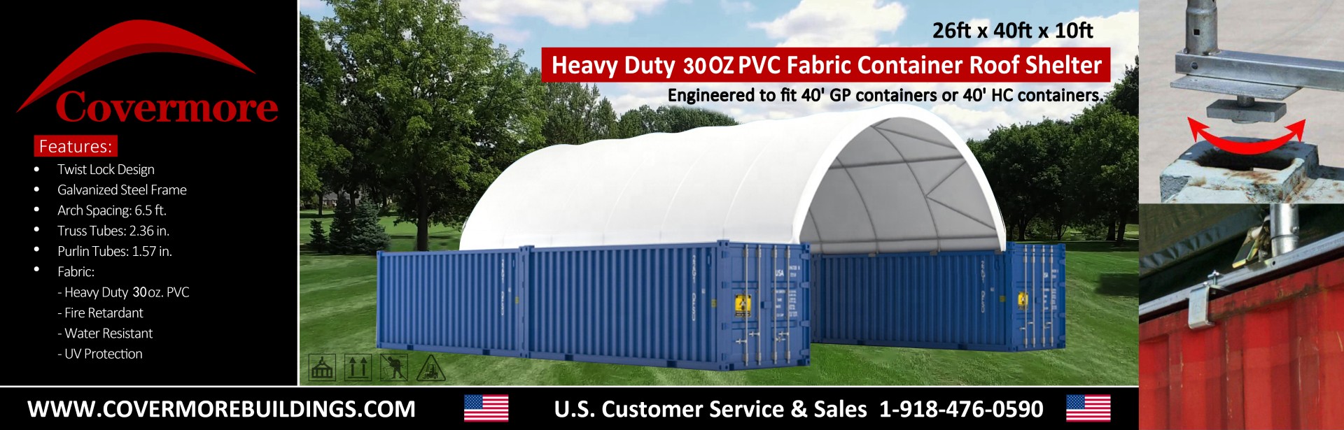 - Model Size: container shelter covers: 26’Wx40’Lx10’H